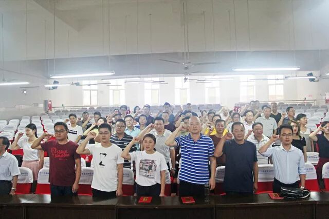颁奖仪式后,学校党委书记袁应柏带领全体党员在庄严的党旗下重温了入党誓词。